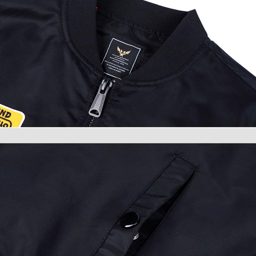 Le blouson de vol MA-1 USAF noir est la veste idéale pour les saisons de transition. Parfait pour les sorties décontractées ou les déplacements, son tissu polyester léger assure un confort optimal sans encombrement. Disponible en noir sobre, il s’accorde facilement avec toutes vos tenues, faisant de lui un choix stylé pour affronter les aléas du temps.
