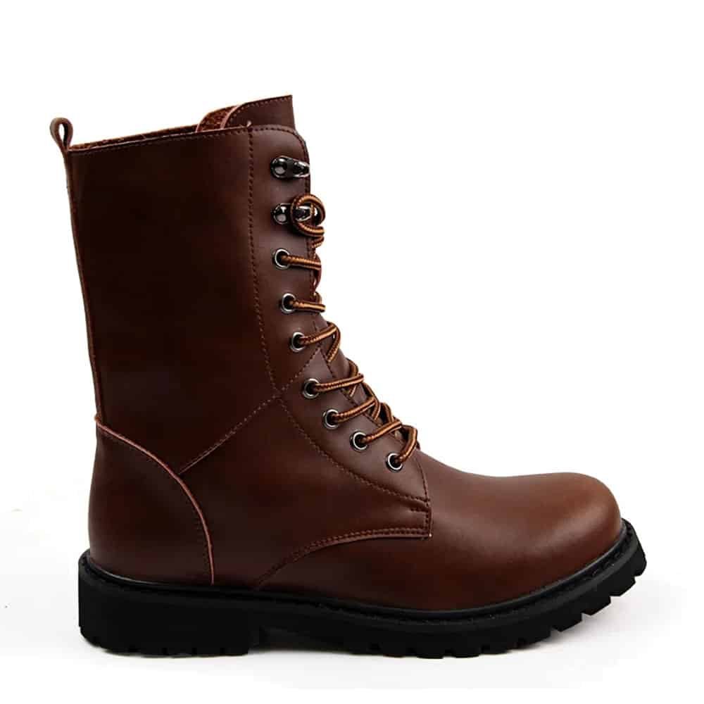 Bottes de combat en cuir marron robustes pour vos aventures hivernales