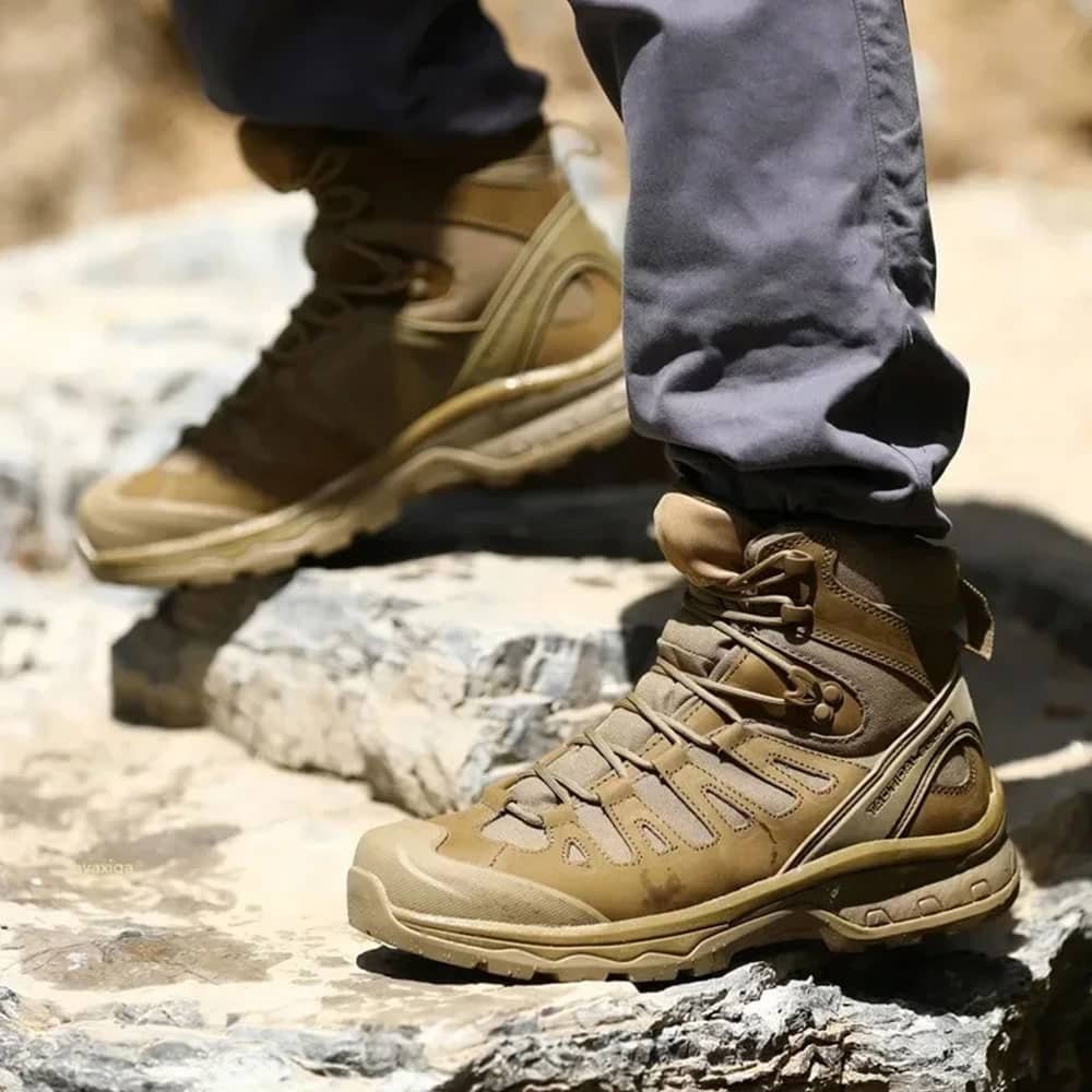 Affrontez les terrains les plus difficiles avec nos bottes de randonnée imperméables couleur coyote. Conçues pour les opérations hivernales, elles allient durabilité et confort grâce à leur talon bas et leur empeigne en toile. La semelle antidérapante assure une stabilité maximale, tandis que la fermeture à boucle garantit un maintien sécurisé. Parfaites pour les professionnels tactiques et les passionnés d’activités outdoor.
