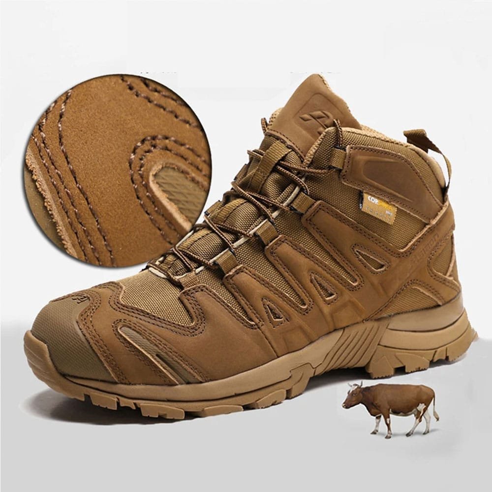 Conçues pour les activités outdoor les plus rudes, ces bottes tactiques Coyote Brown sont idéales pour la randonnée, l’escalade ou un usage militaire. Leur construction en nylon respirant et cuir véritable assure un confort optimal quelles que soient les conditions, tandis que la semelle en caoutchouc garantit une adhérence parfaite sur tous les terrains. Parfaites pour vos aventures d’automne et d’hiver, ces bottes allient performance et style.