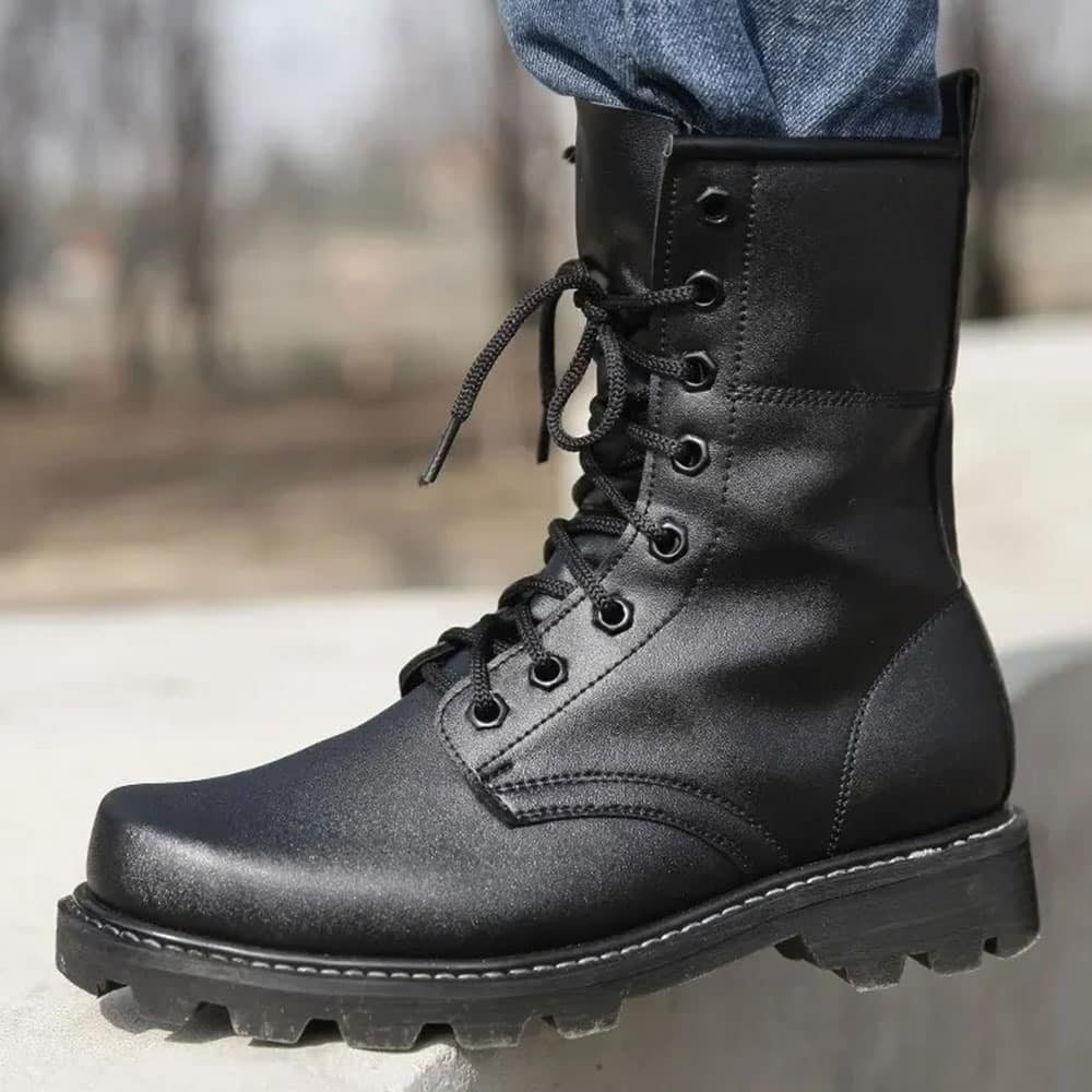 Bottes de combat en cuir noir résistantes pour usage tactique