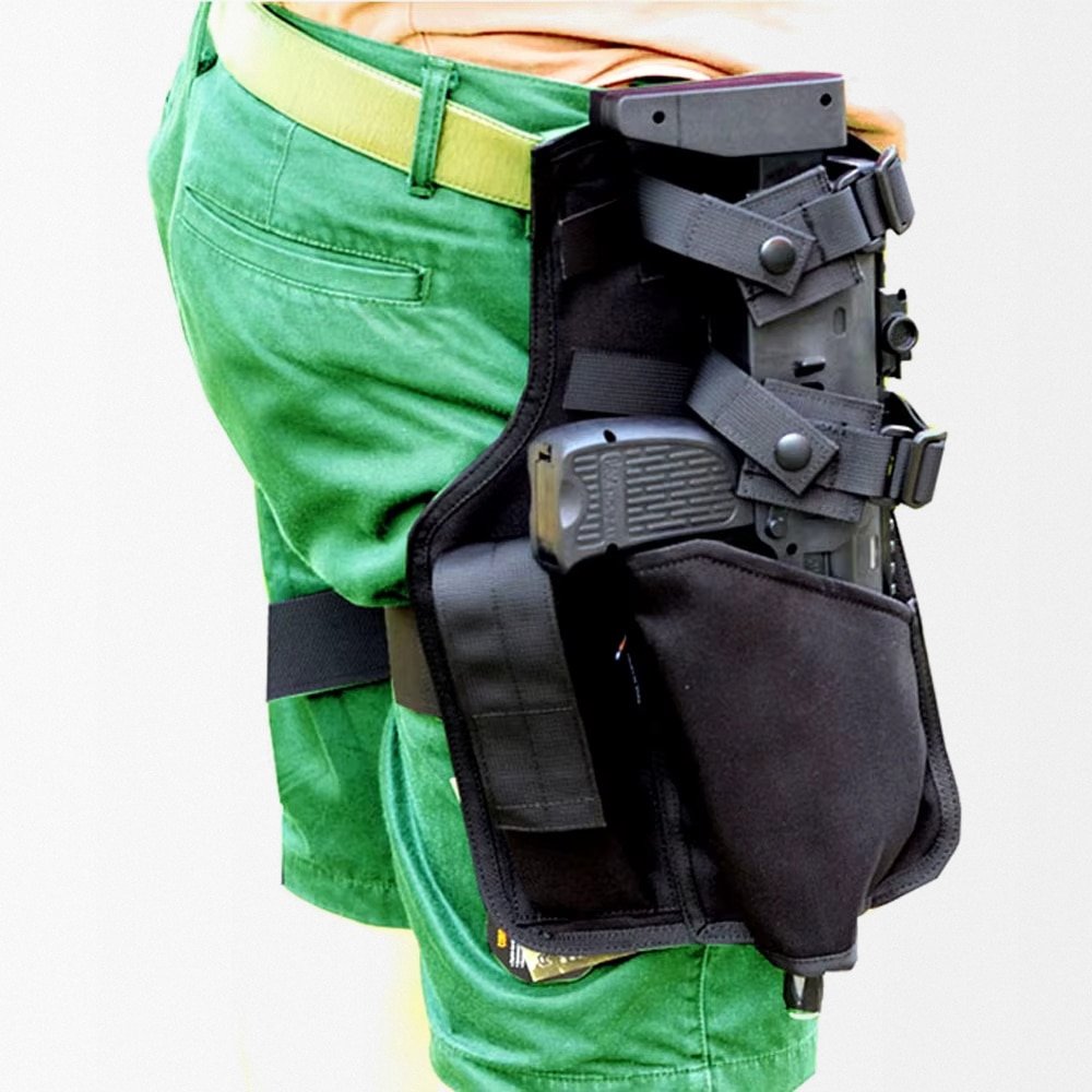 Profitez d’un confort optimal avec ce holster cuisse pour MP7, fabriqué en nylon 1000D robuste. Il dispose d’une sangle réglable avec boucle rapide et d’une poche porte-chargeur intégrée, pour garder votre équipement toujours à portée de main. Idéal pour les opérations tactiques, il se fixe facilement sur la plupart des ceintures de service et s’adapte parfaitement aux MP7 et SMG airsoft de taille comparable.