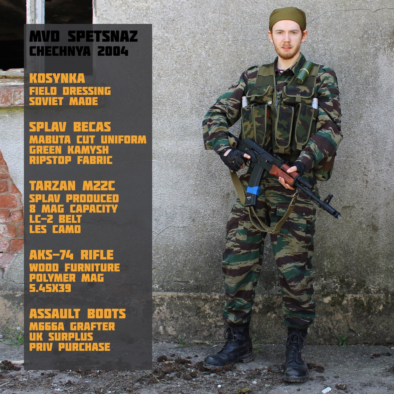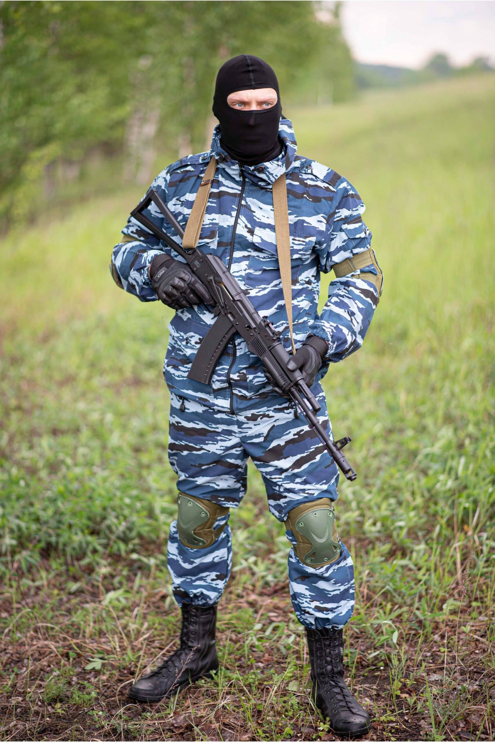 La force du camouflage Kamysh réside dans son imitation des herbes hautes et des roseaux, ce qui le rend particulièrement efficace dans les zones humides ou les marais. Les rayures verticales et les différentes nuances de vert et de brun perturbent la silhouette du porteur et se fondent parfaitement dans les lignes verticales de la végétation naturelle que l’on trouve généralement dans ces zones.