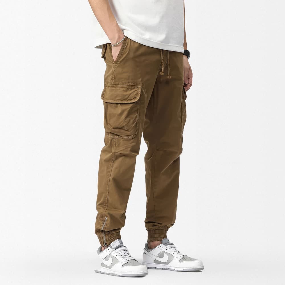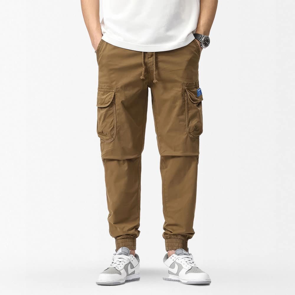 Ce pantalon cargo militaire coupe ajustée est parfait pour vos sorties décontractées au printemps et en été. Léger grâce à son mélange coton-spandex, il offre confort et liberté de mouvement. Sa fermeture à cordon et ses nombreuses poches en font un choix pratique pour toutes vos activités en extérieur. Disponible en kaki, gris et vert armée.