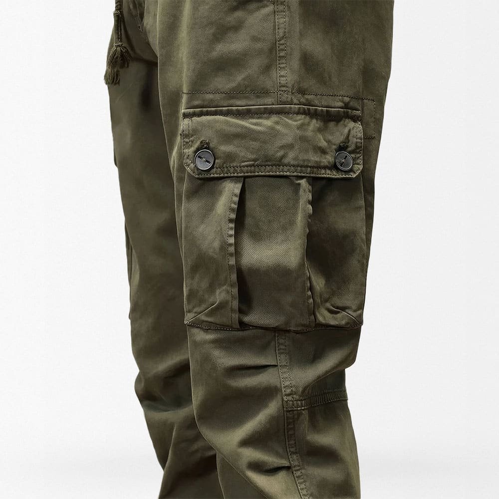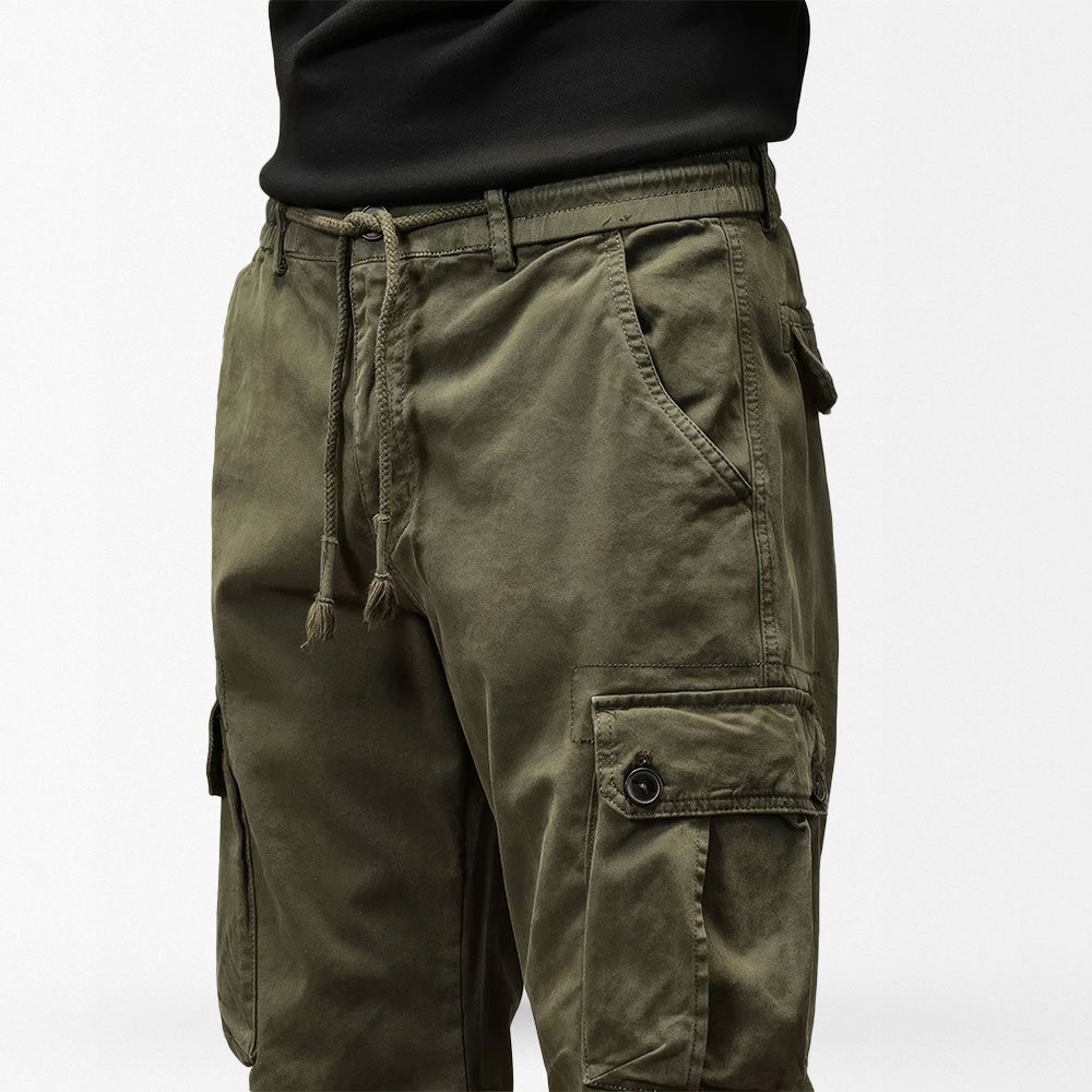 Ce pantalon jogger cargo militaire est parfait pour vos sorties décontractées au printemps et en été. Conçu en tissu mi-lourd avec une taille à cordon, il allie confort et style. Ses multiples poches facilitent le transport de vos essentiels, en faisant un choix pratique pour toutes vos activités outdoor.