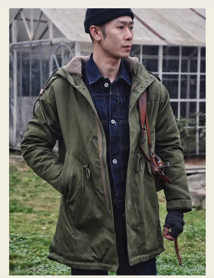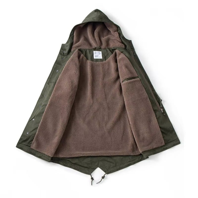 Idéale pour les journées fraîches de printemps, d’automne et d’hiver, cette parka militaire US M-51 vert allie protection coupe-vent et isolation thermique grâce à sa doublure en coton polaire confortable. Parfaite pour le camping, la randonnée ou les sorties décontractées, elle offre une coupe ample et des poches latérales pratiques. Disponible dans un vert militaire polyvalent.