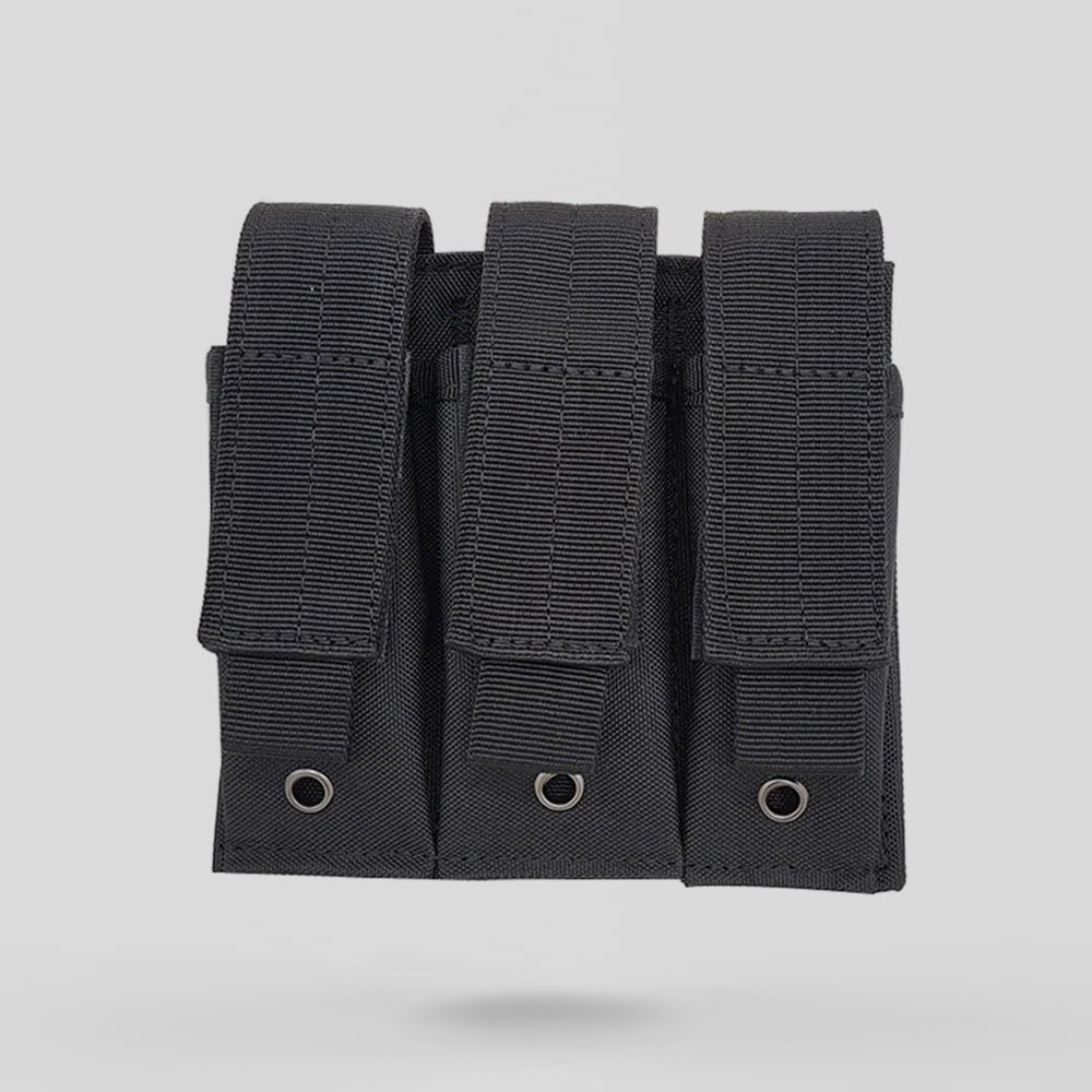 Le porte-chargeurs triple 9 mm est fabriqué en nylon de haute qualité, garantissant robustesse et fiabilité sur le terrain. Conçu pour les gilets tactiques et équipements MOLLE, il dispose d’une fermeture auto-agrippante et d’un onglet de libération rapide pour un accès immédiat. Idéal pour les sports outdoor, le camping et la chasse, disponible en noir, vert, tan et CP ACU.