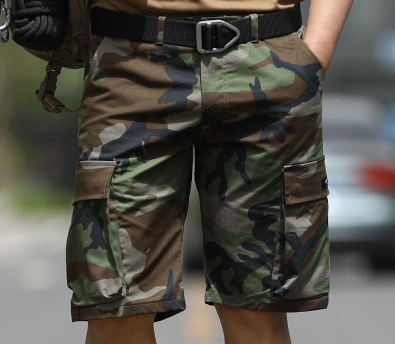 Fondez-vous dans la nature avec le short cargo camouflage homme