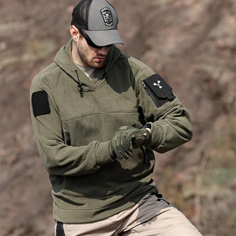 Restez au chaud et stylé au printemps comme en automne avec ce sweat à capuche polaire tactique. Conçu pour un usage quotidien, il dispose de multiples poches pratiques et d’une capuche protectrice. Sa matière polaire assure un confort optimal, tandis que son style safari apporte une touche robuste. Disponible en couleurs unies pour s’adapter à toutes vos tenues.