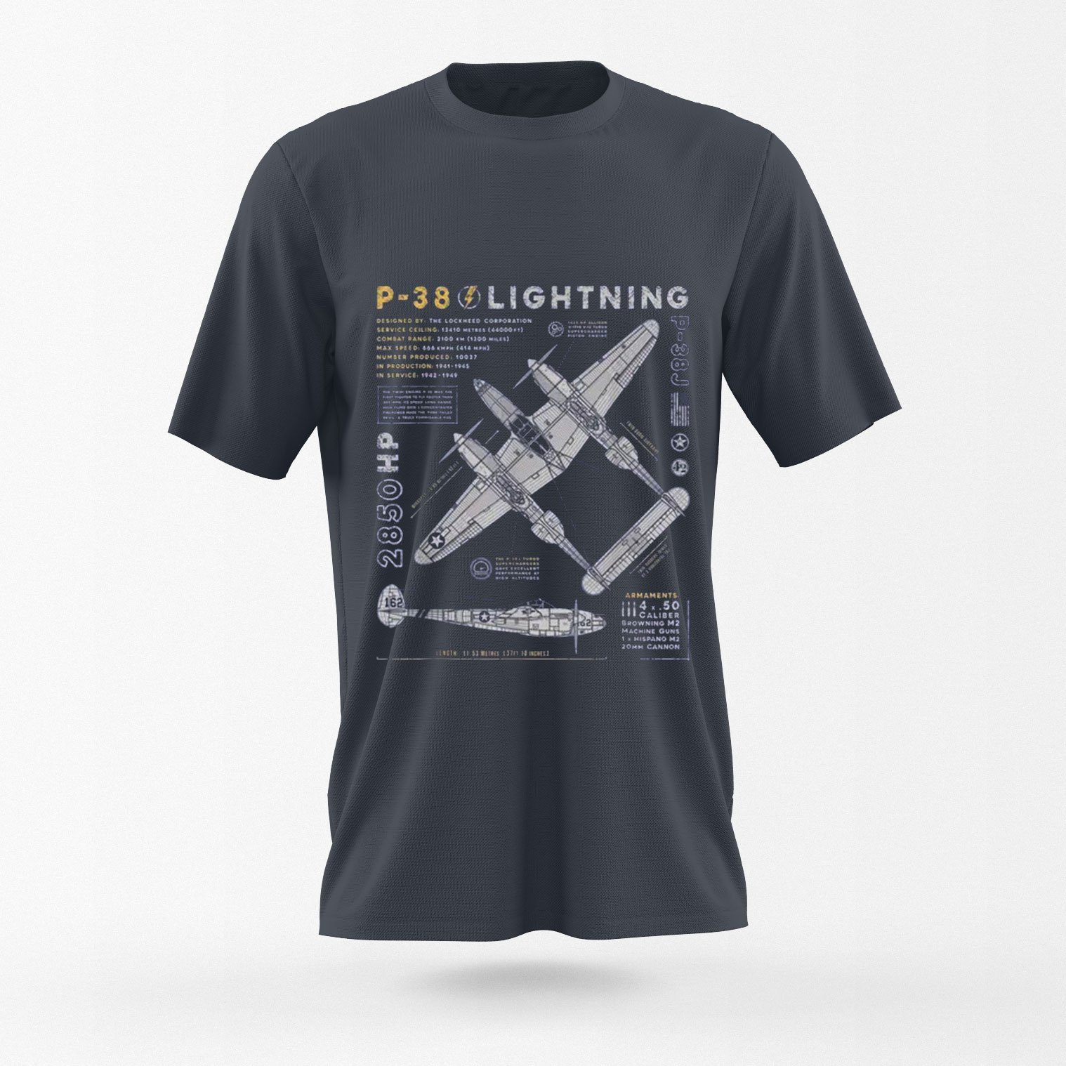Ce T-shirt classique P-38 Lightning rehaussera votre style. Son design intemporel s’inspire de ce célèbre chasseur de la Seconde Guerre mondiale. Un incontournable pour les passionnés d’aviation, il vous permet d’afficher avec élégance votre amour pour les avions militaires vintage.