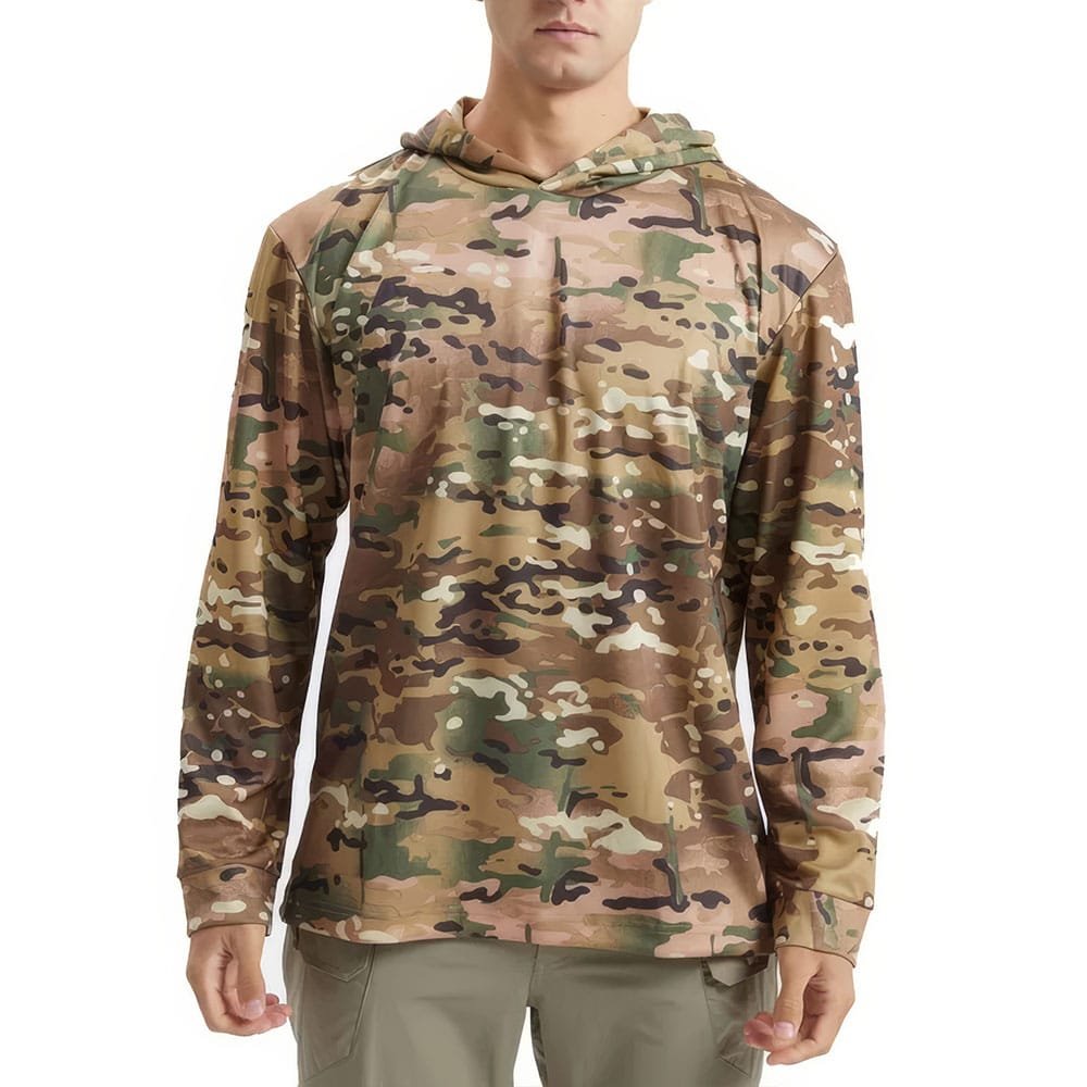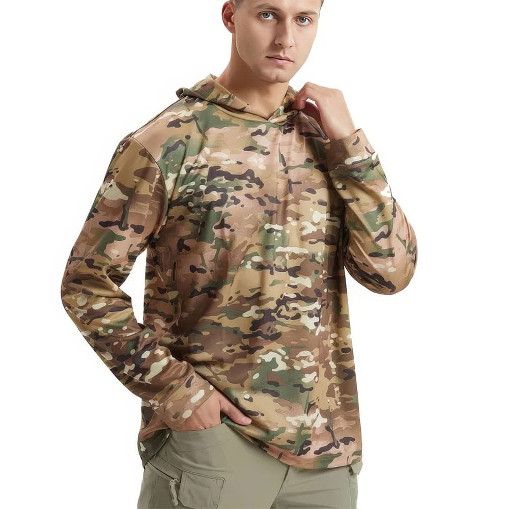 Restez à l’aise toute l’année avec ce t-shirt tactique à capuche et manches longues. Idéal pour les activités outdoor et les déplacements, son tissu respirant et à séchage rapide vous garde au frais et au sec. Parfait pour le printemps, l’été et l’automne, ce vêtement allie polyvalence et robustesse, un indispensable pour toutes vos aventures.